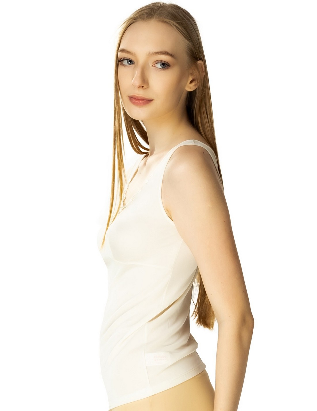 Olimpia to koszulka dla każdej kobiety, bez względu na rozmiar. Dostępna jest od rozmiaru 38 do rozmiaru 58; w czterech podstawowych kolorach: białym, ecru, beżowym i czarnym.