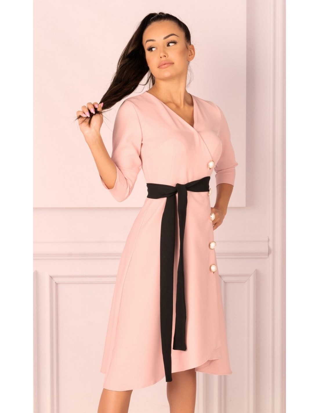 Miramen sukienka damska midi z rękawem 3/4 pudrowa, Merribel