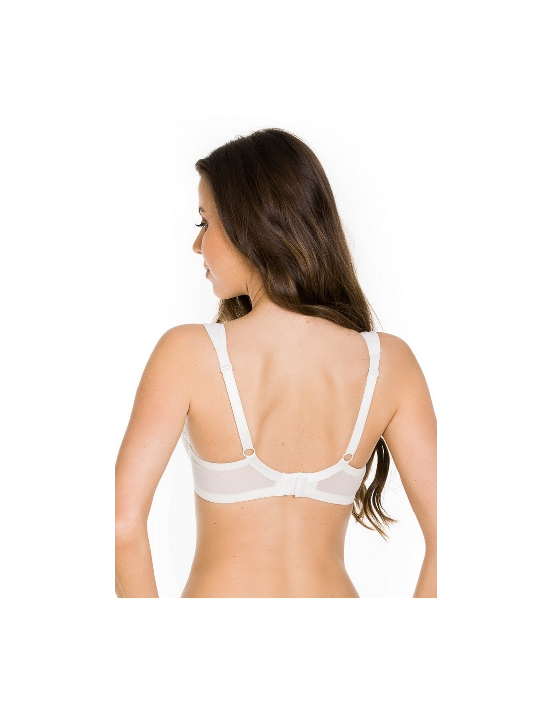 Biały stanik Mediolano Jasmin plunge 19150 to miękki model z fiszbinami, idealny dla kobiet z pełniejszym biustem. Koronkowe miseczki i regulowane ramiączka zapewniają doskonałe podtrzymanie oraz komfort na co dzień.