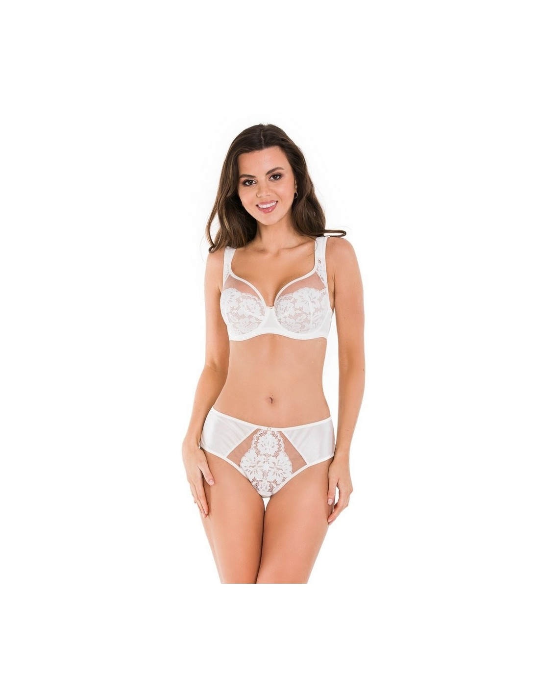 Biały biustonosz Mediolano Jasmin plunge 19150, koronkowy