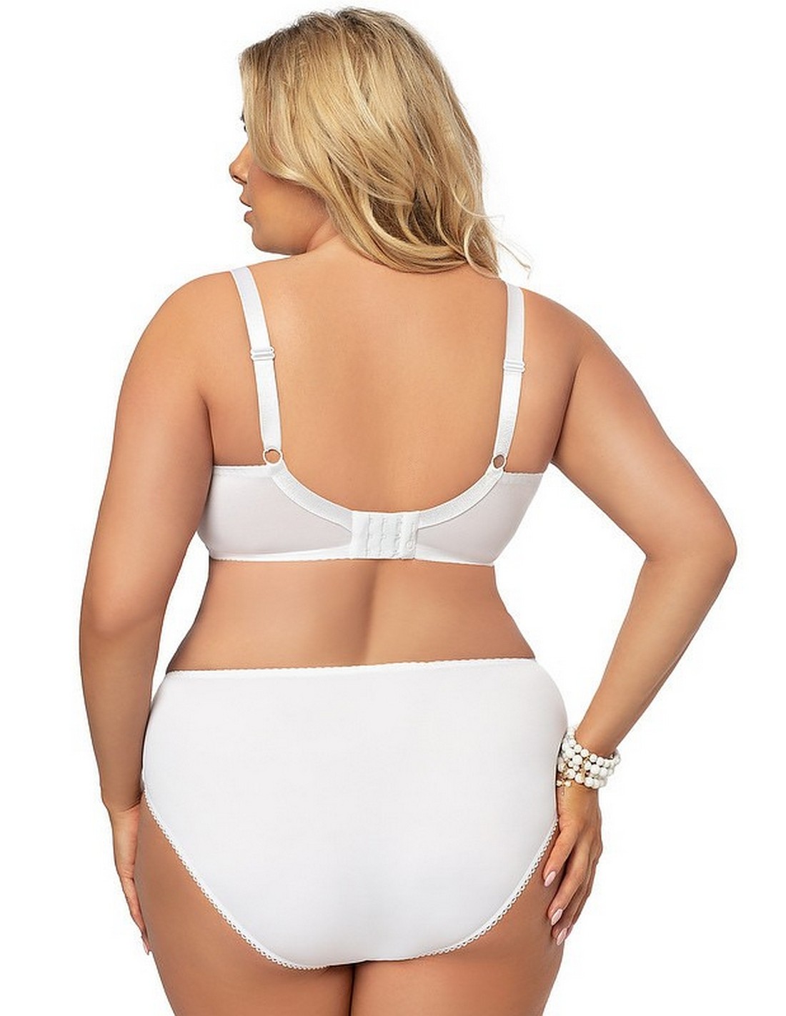 The Victoria bra is a classic, soft underwired bra. Made of perfect, smooth raw materials combined with elegant embroidery. Perfectly cut cups collect the bust well and keep it in the right place. The lower part of the cups is made of a strong, smooth, matte fabric. The upper part is made of embroidery for reinforcement lined with a delicate mesh. A decorative bow in the middle. Sides made of stretch-resistant Lycra knit. Adjustable, non-removable shoulder straps.