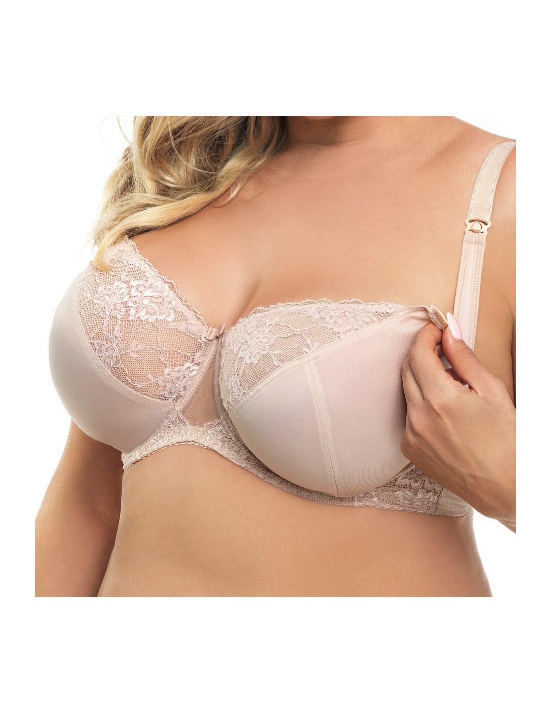 Insanely comfortable, soft bra with underwires, designed for pregnant women and nursing mothers. The model is designed with smooth materials combined with beautiful, elastic lace.