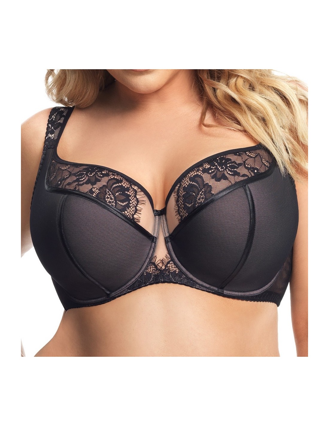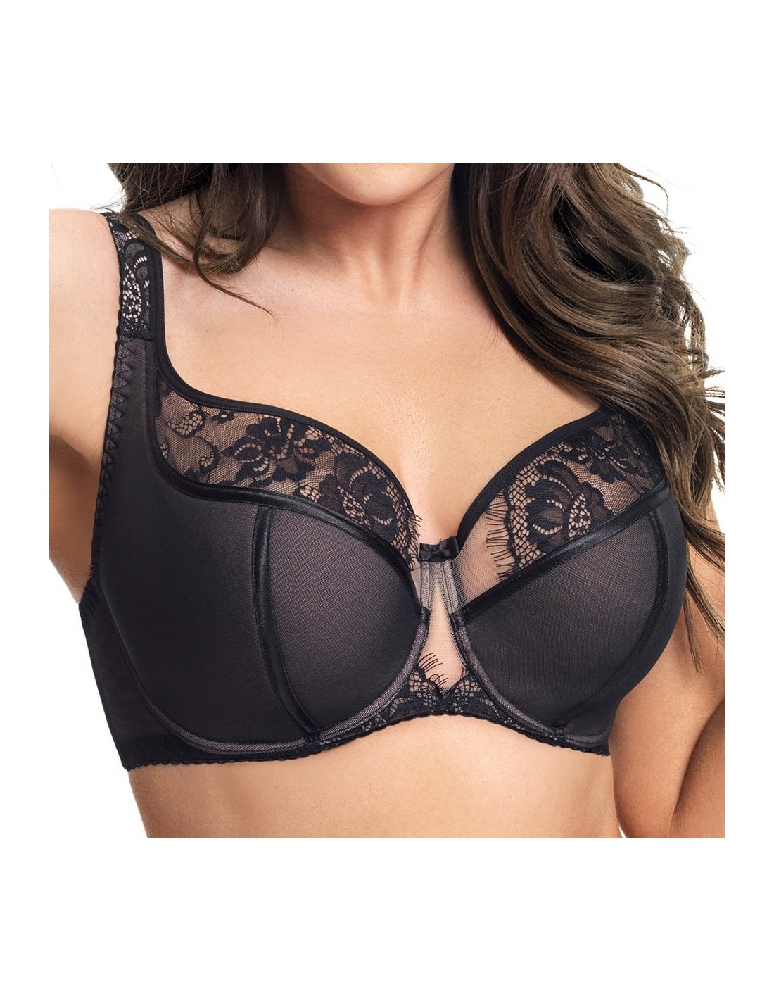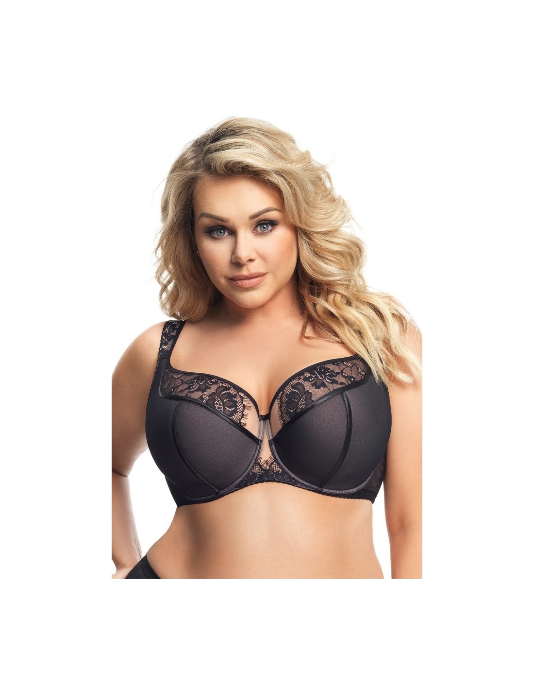 Sensational semi-padded bra made of tulle with the addition of lace. The bottom part of the bra is stiffened with a soft foam that perfectly shapes the breasts. The upper parts of the bra cups made of tulle, decorated with subtle lace. The inside of the cups are lined with an additional mesh for reinforcement. The center of the bra is very effective, it adheres perfectly to the sternum. The sides are made of excellent quality stretch-resistant fabric. The cups are shaped with a wire that surrounds the breasts. The front is decorated with a shiny piping, which gives the whole a stylish look. Comfortable, wide straps, lined with a delicate sponge and decorated with beautiful lace. Gorsenia K647 perfectly collects the breasts inside, lifts and maintains a beautiful, rounded shape. Sides reinforced with vertical underwires will keep the bra in the right place. The back is made of elastic mesh. Clasp: hooks, depending on the size, two- or three-row with 3-step circumference adjustments.