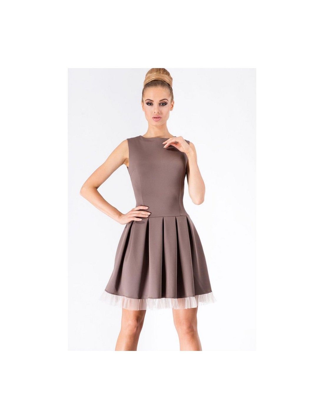 Dress women's flared sleeveless, Makadamia m178
