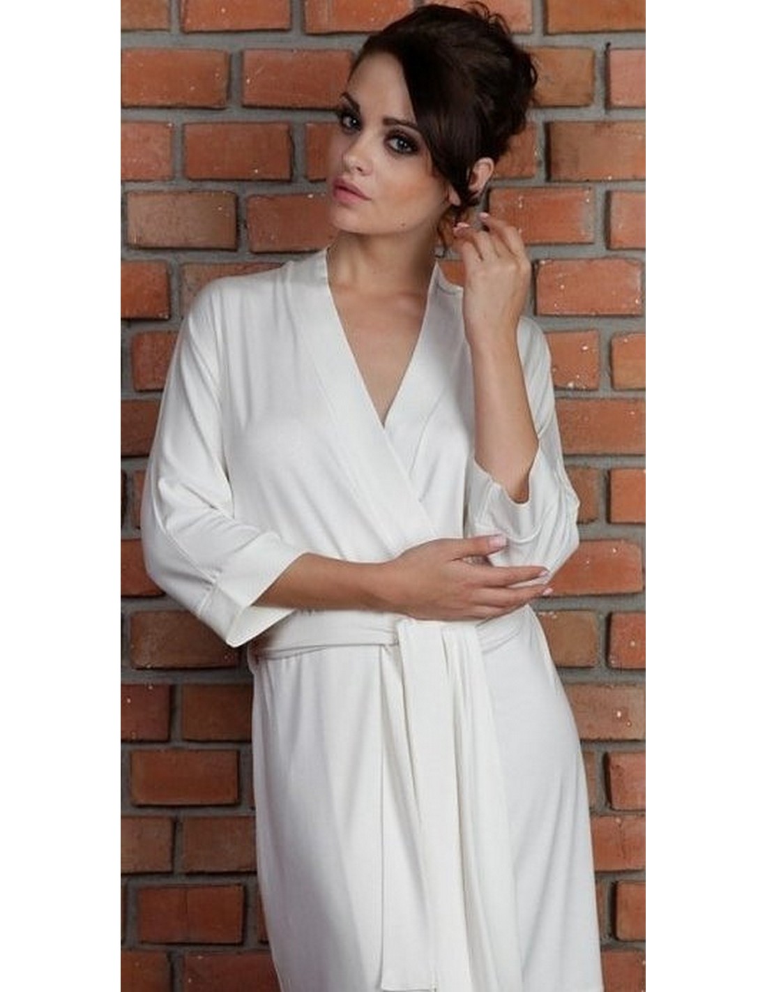 Long women's bathrobe made of high-quality viscose. This model is thin, has 3/4 length sleeves and is tied at the waist.