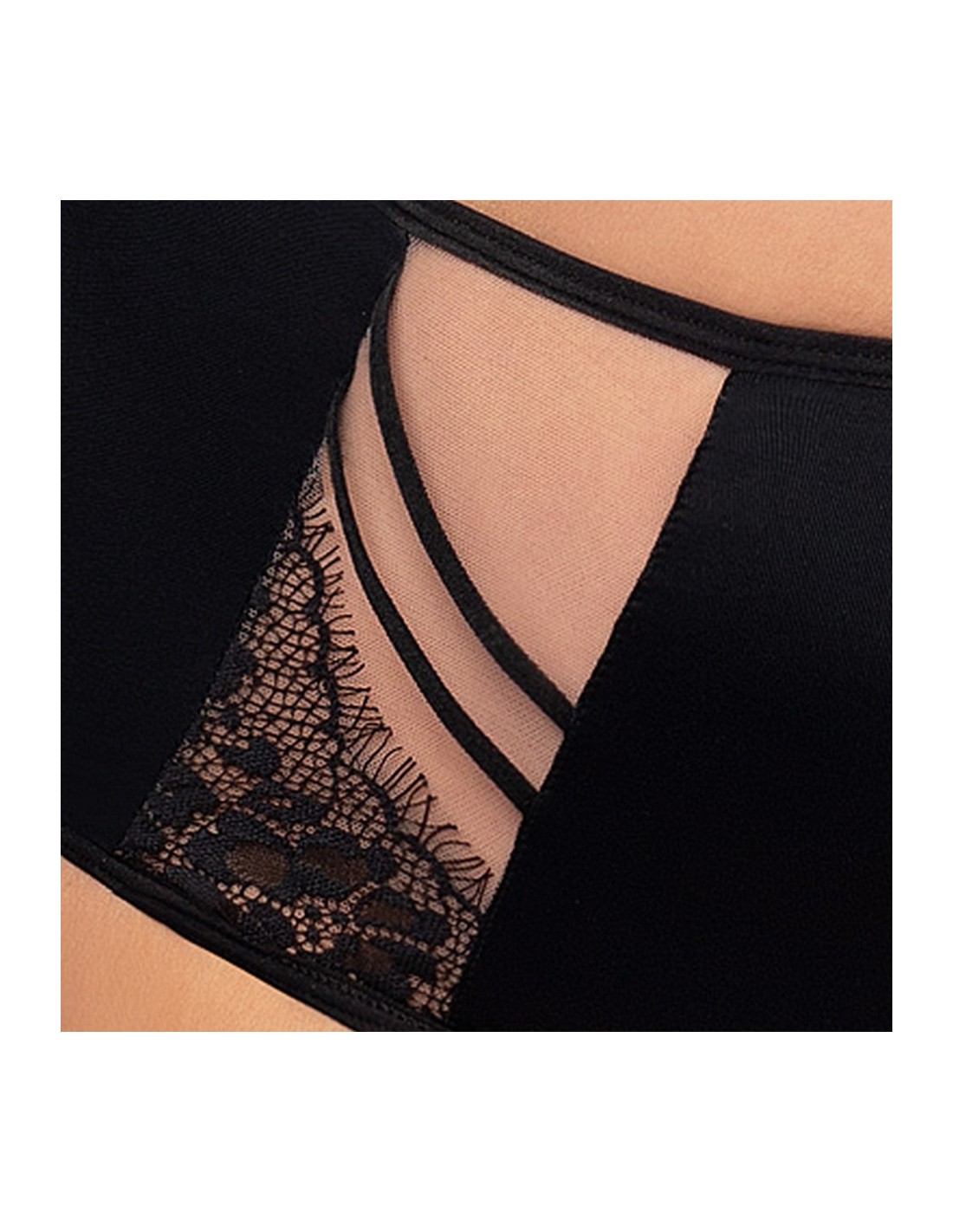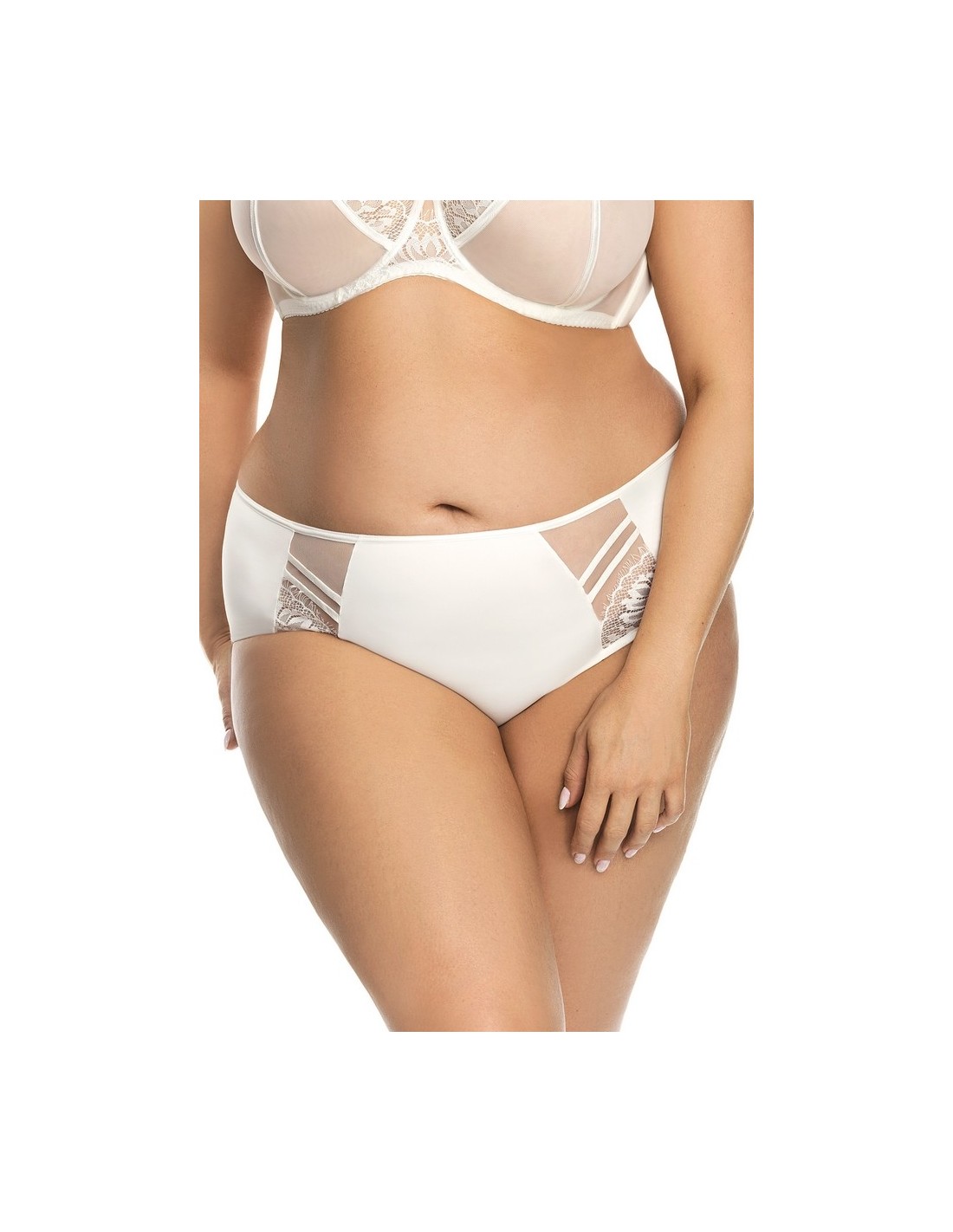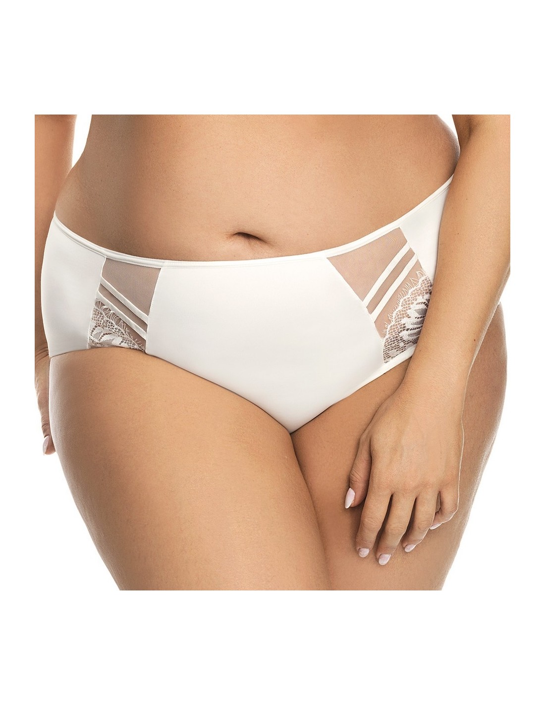 Chic women's briefs with a full and built-up cut will subtly shape the female figure. Description of the translator google: Briefs designed in a pleasant fabric, decorated at the front with tulle and delicate lace inserts.