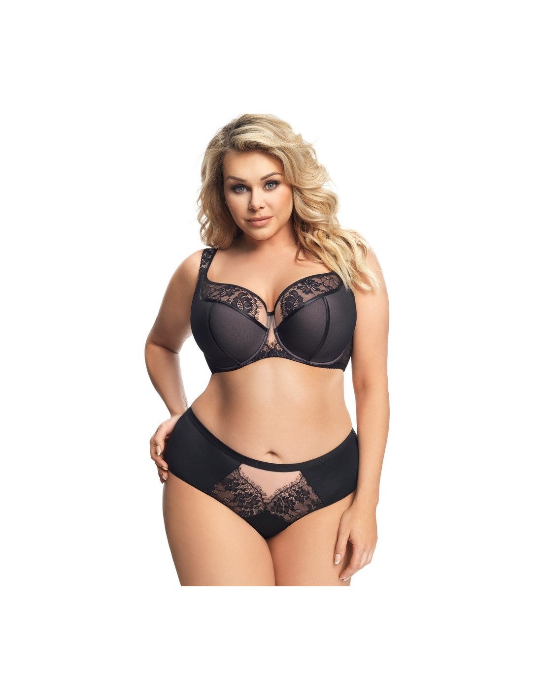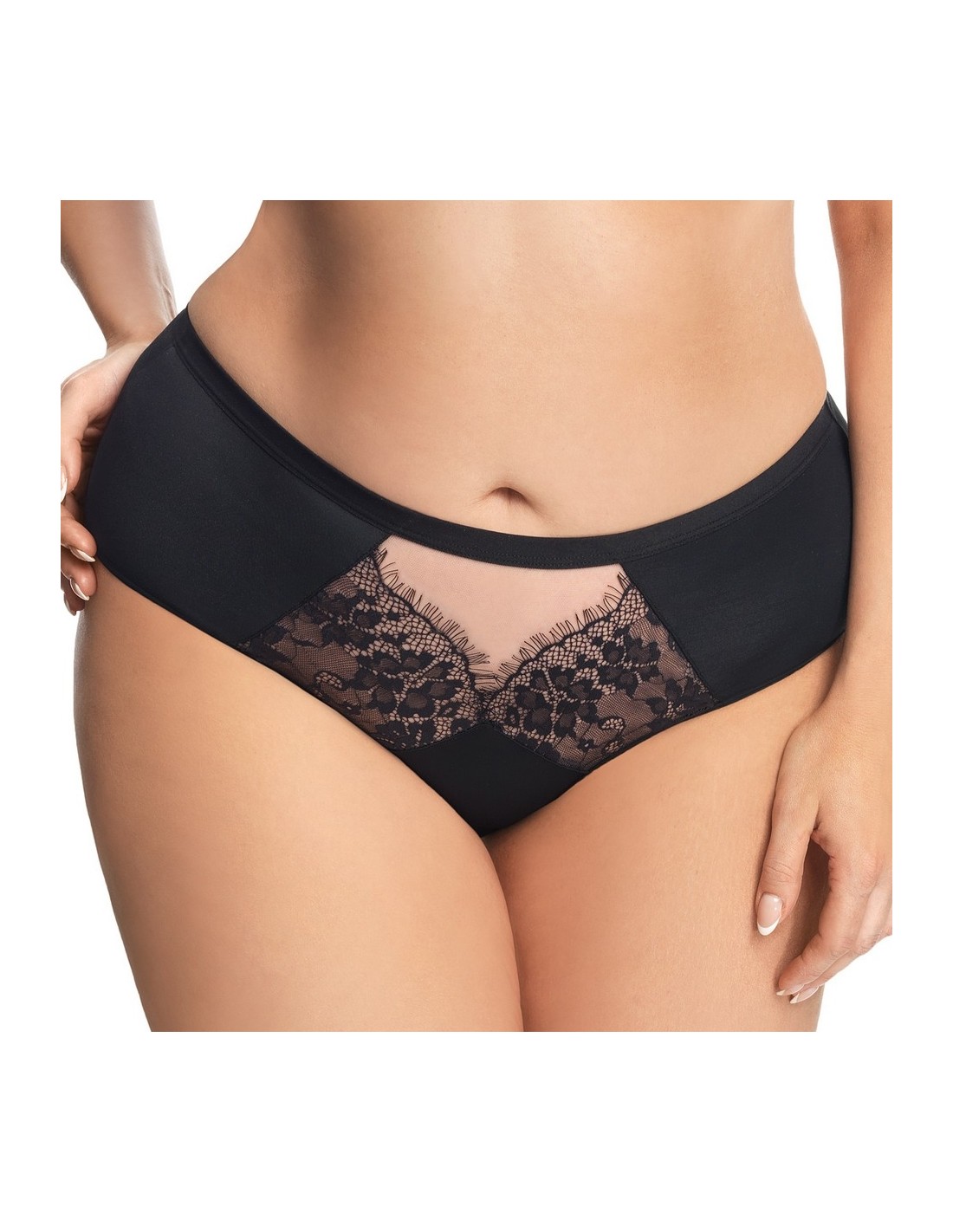 Description of the translator google: Extremely impressive briefs with a high and built-up fashion. Made of soft microfiber decorated with tulle and delicate lace at the front and back. The front legs are finished with a smooth elastic band. At the back, the legs are finished with a smooth double-folded elastic tulle. Wide, flat elastic at the waist.