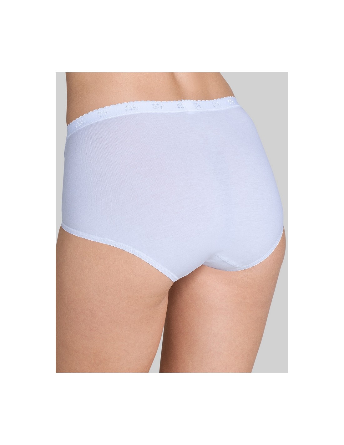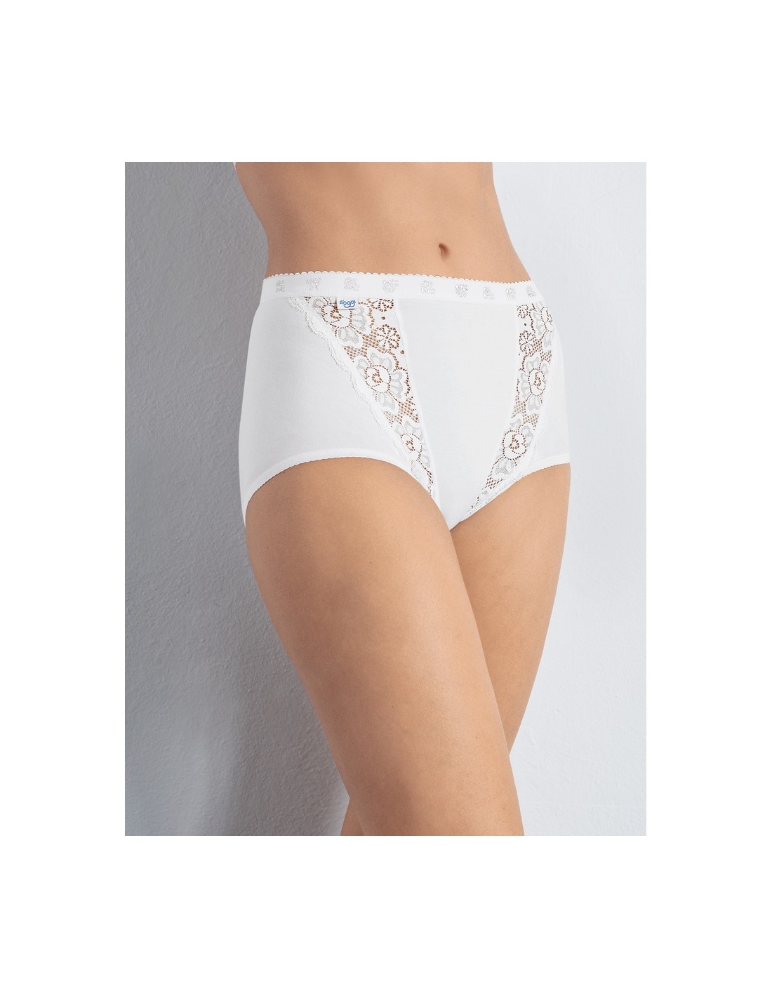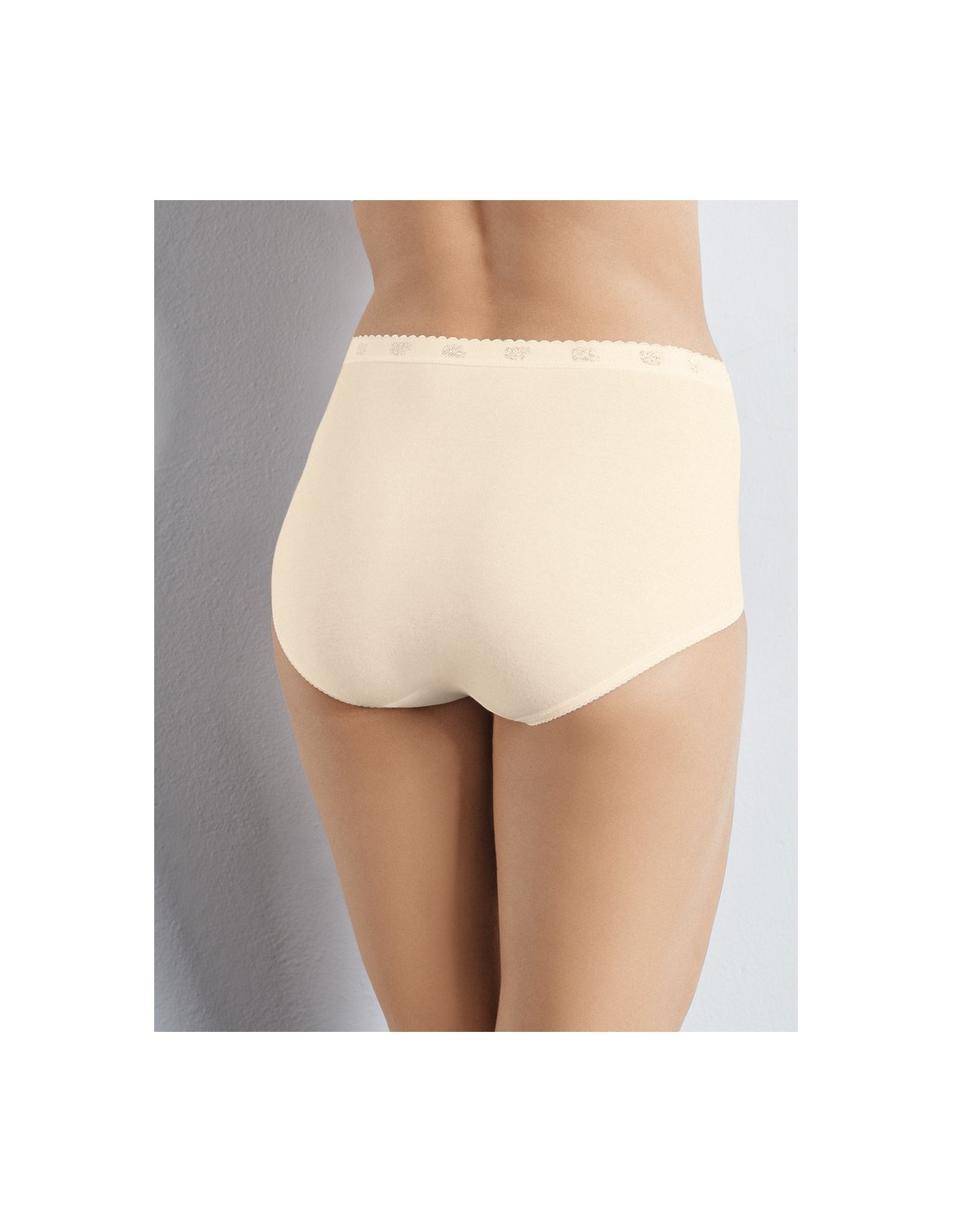 Maxi panties made of soft material, decorated with elastic lace inserts. Their classic design with comfortable, wide sides ensures unrivaled wearing comfort. A stable elastic band at the waist guarantees a perfect fit. The material with a high content of ring spun cotton is extremely soft and comfortable. Composition: 85% Cotton, 10% Polyamide, 5% Elastane.