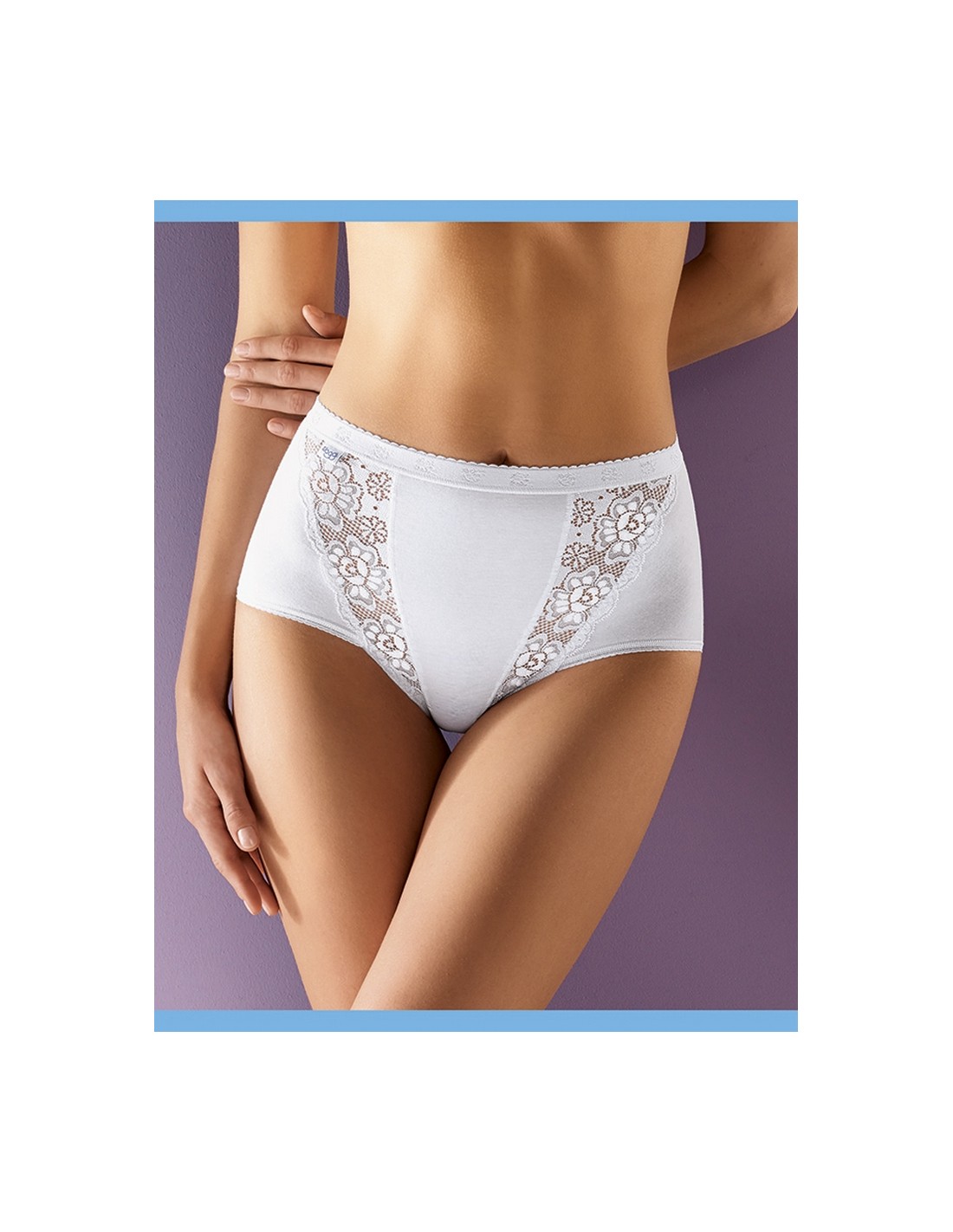 Maxi panties made of soft material, decorated with elastic lace inserts. Their classic design with comfortable, wide sides ensures unrivaled wearing comfort.