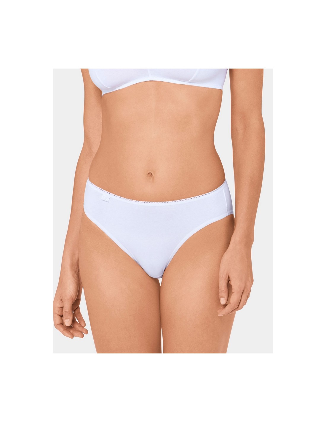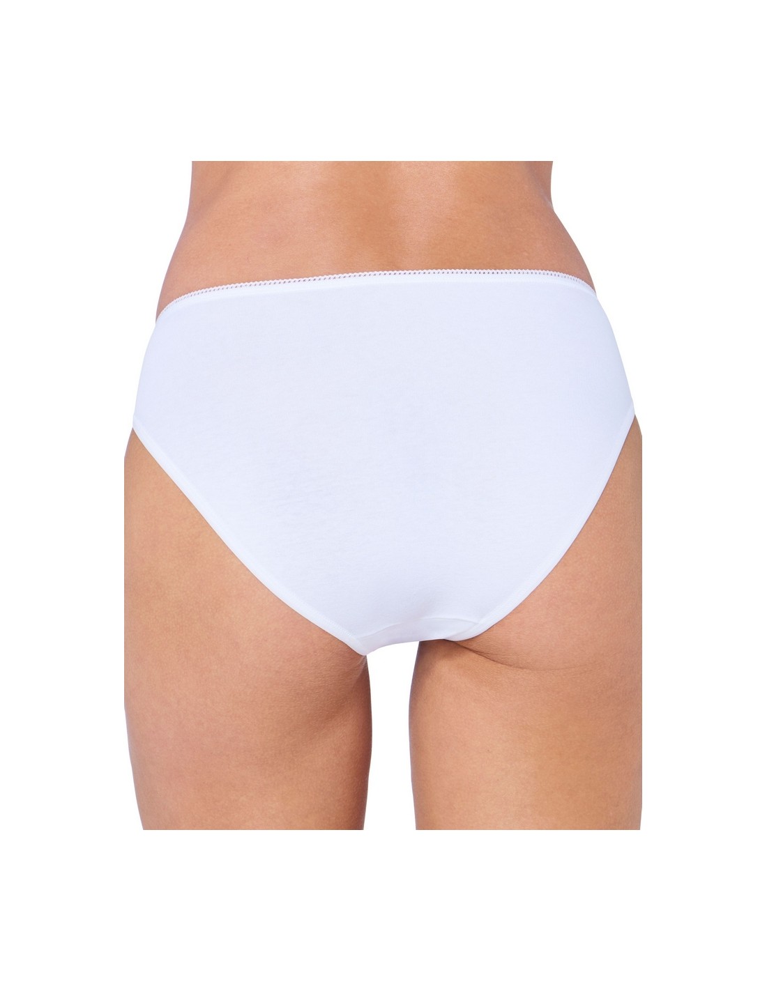 Classic women's panties are the perfect choice for women who value convenience and comfort. Elastic band with delicate crochet lace ensures perfect fit to the body. The finish with flat seams guarantees high quality and maximum wearing comfort. The high cotton content makes the underwear pleasant to the skin, providing natural comfort throughout the day. The white color can be washed at temperatures up to 60 degrees, which makes it easier to care for. Composition: 96% Cotton, 4% Elastane.