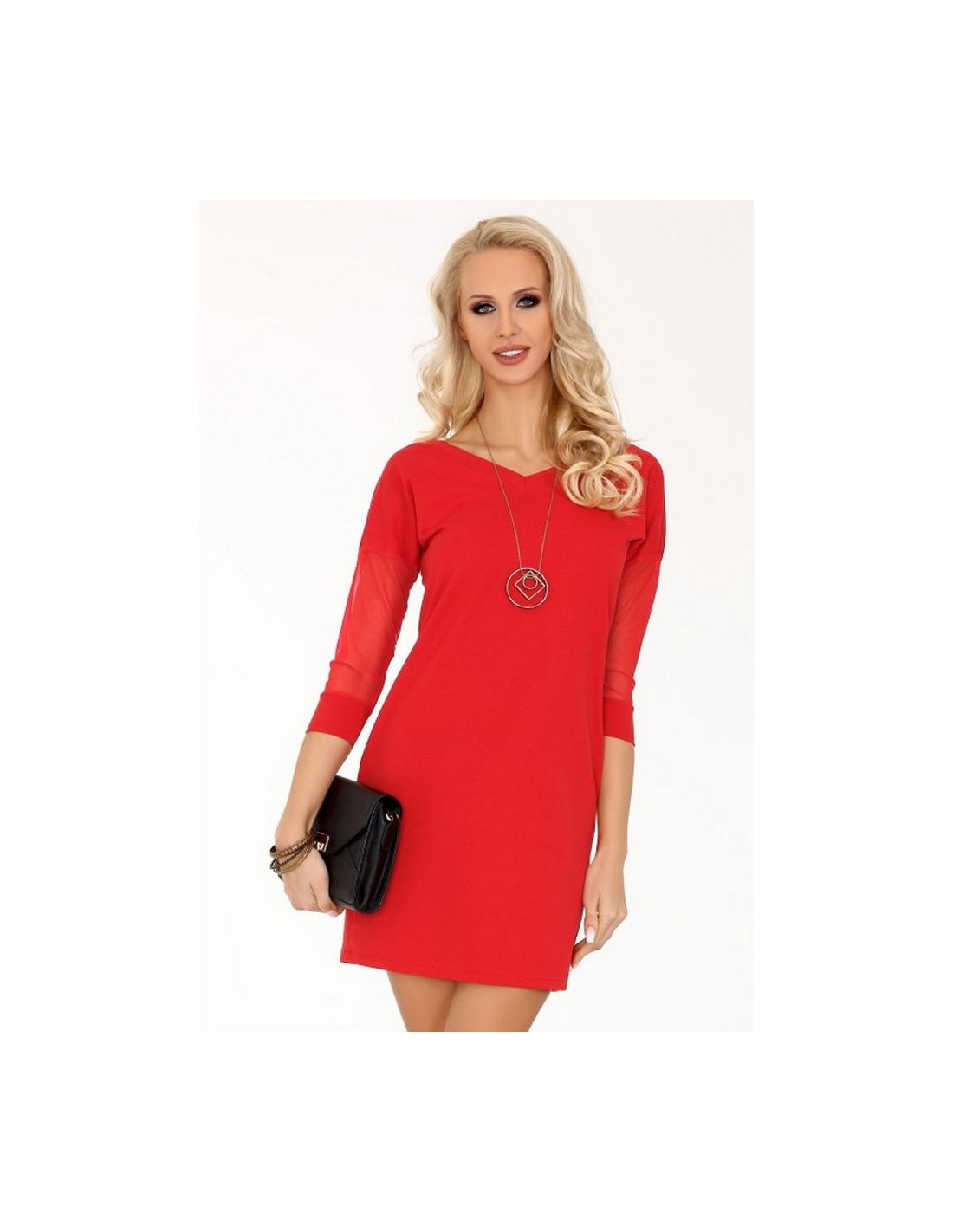 Betanisa dress women's with decorative sleeves 3/4 red, Merribel