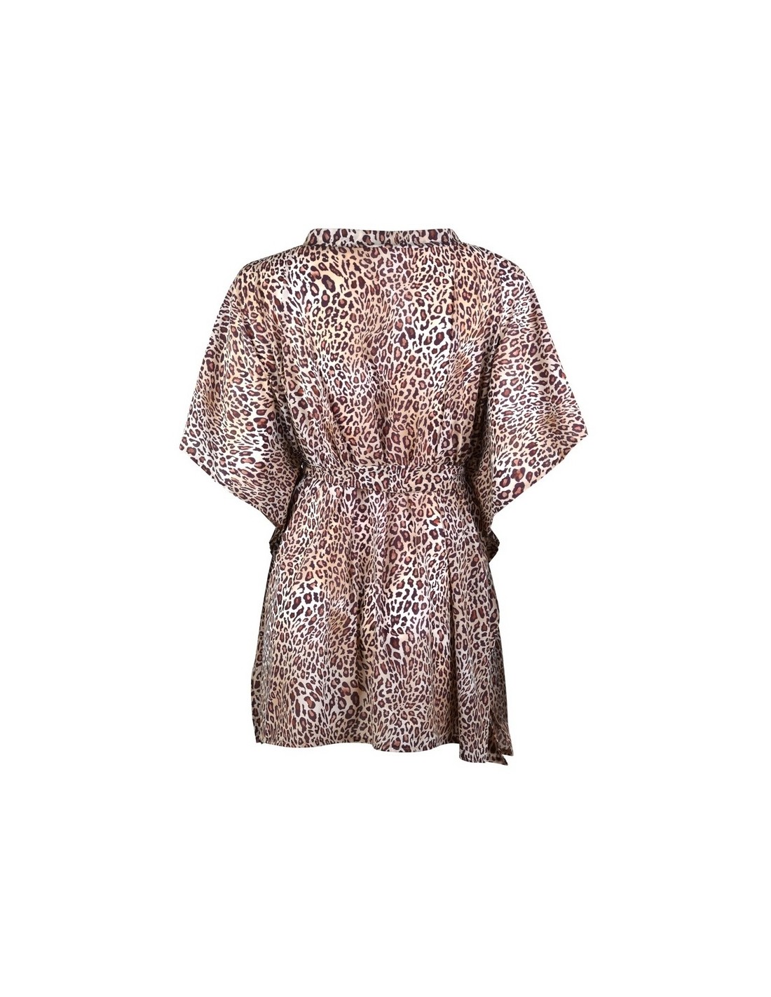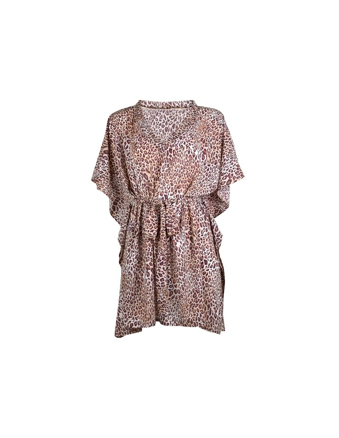 Pareo made of a delicate material with a leopard print, tied with a belt at the waist.
