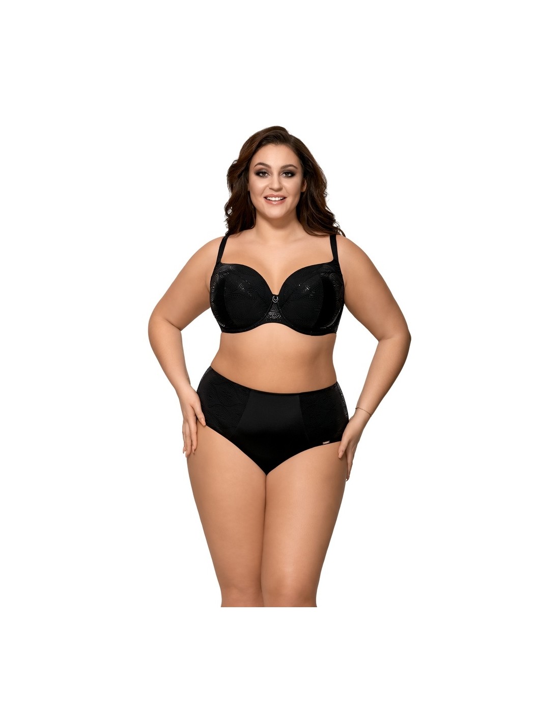 The black padded swim bra stands out from the rest with its elegance. The swim bra has been reinforced with underwires that perfectly support the bust and create a tempting neckline. Bra fastened at the back, straps not detachable, adjustable.