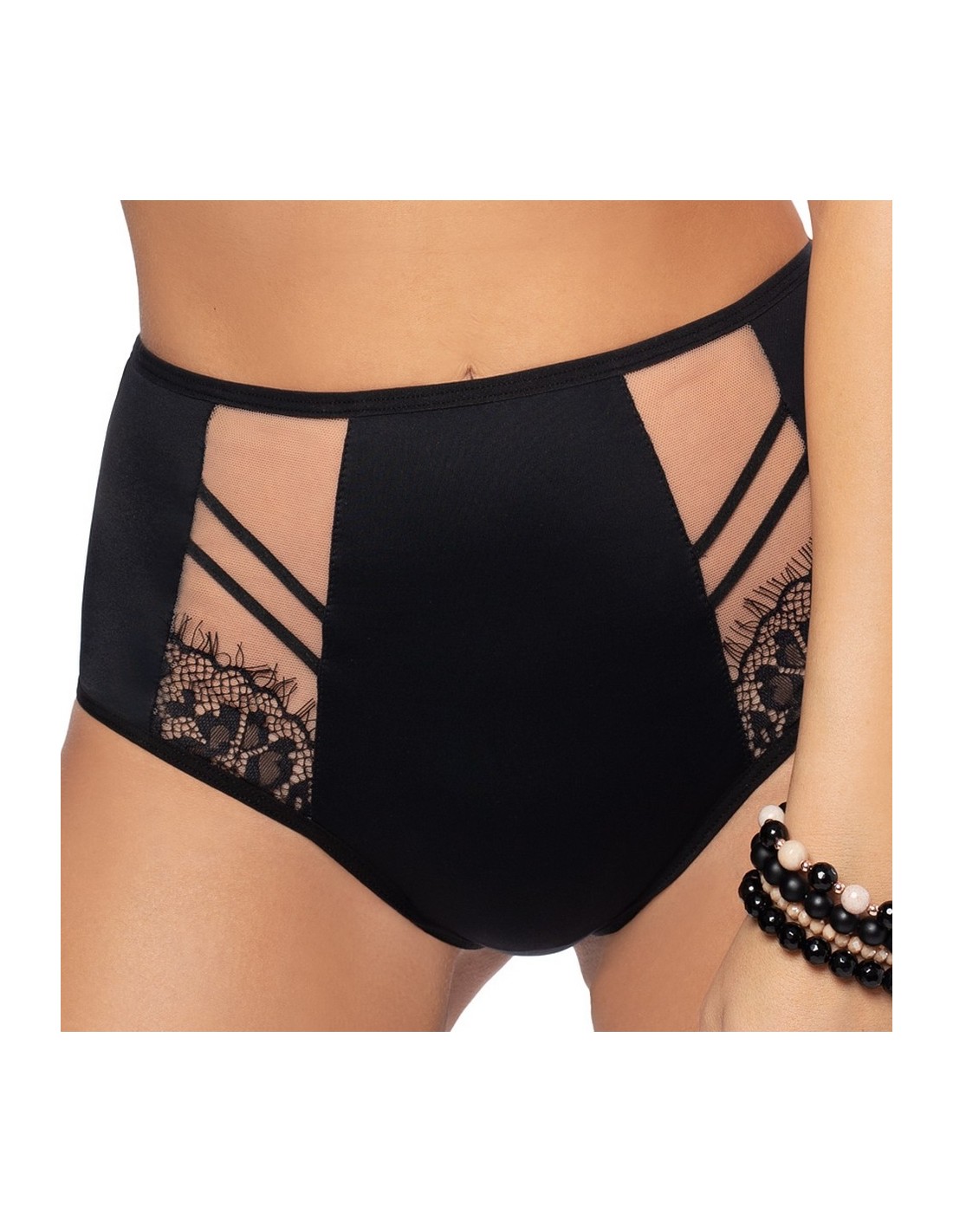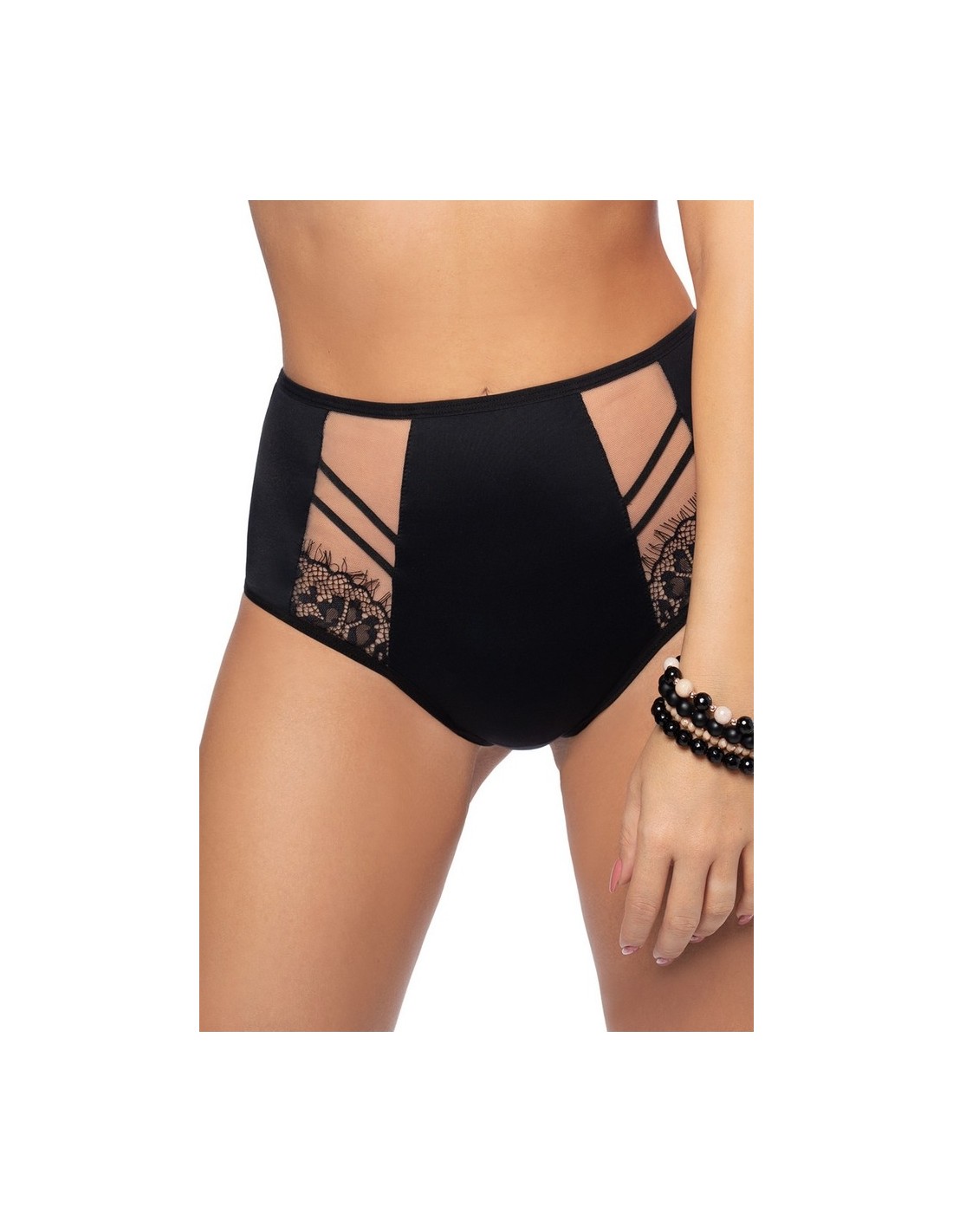 Gorsenia K498 Paradise is a high and very comfortable bikini bottom made of pleasant fabric, decorated with tulle and delicate lace inserts on the front. The back is smooth.