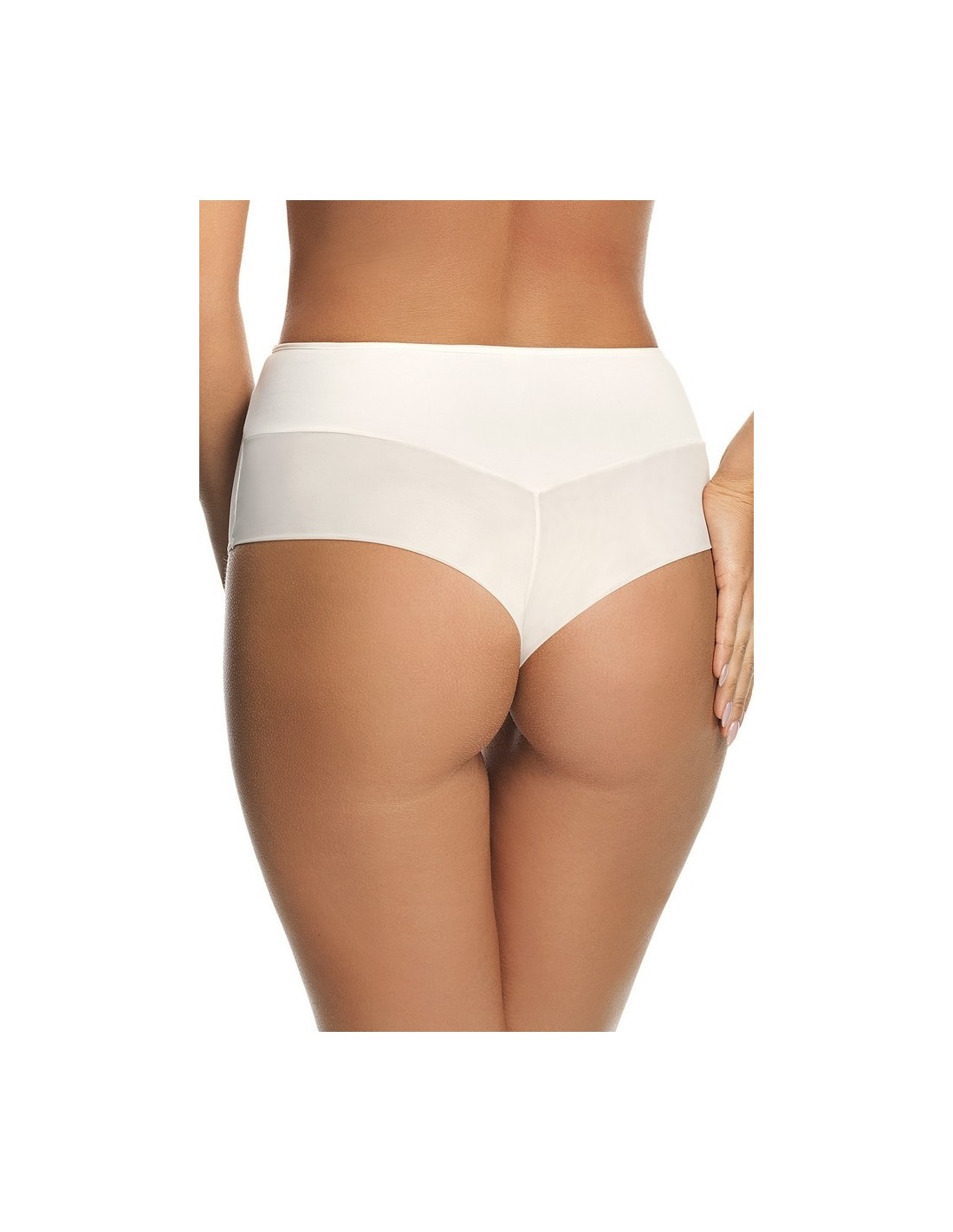 Gorsenia K498 Paradise is a high and very comfortable bikini bottom made of pleasant fabric, decorated with tulle and delicate lace inserts on the front. The back is smooth. Legs on the front finished with smooth elastic band. On the back legs finished with smooth double folded tulle elastic.