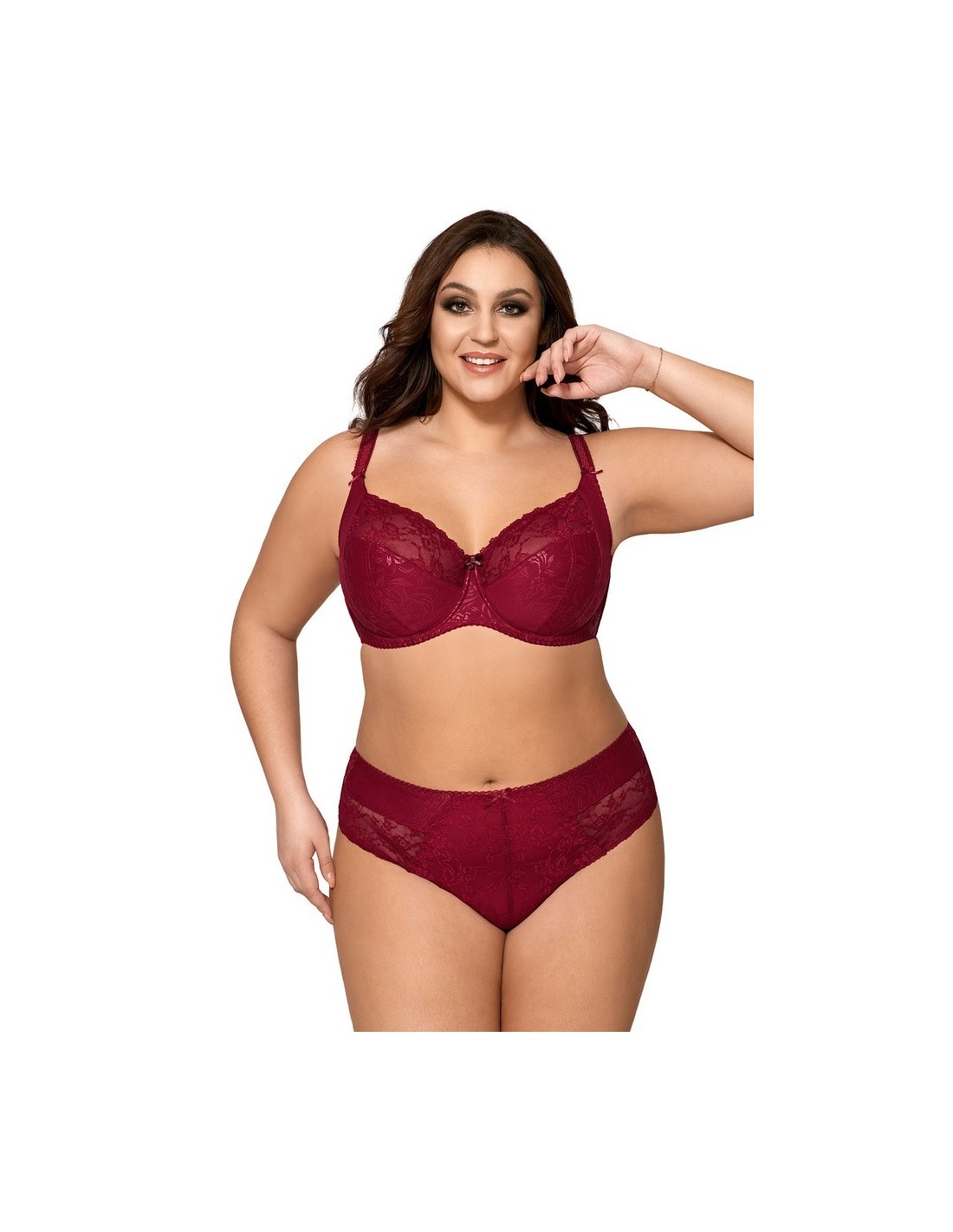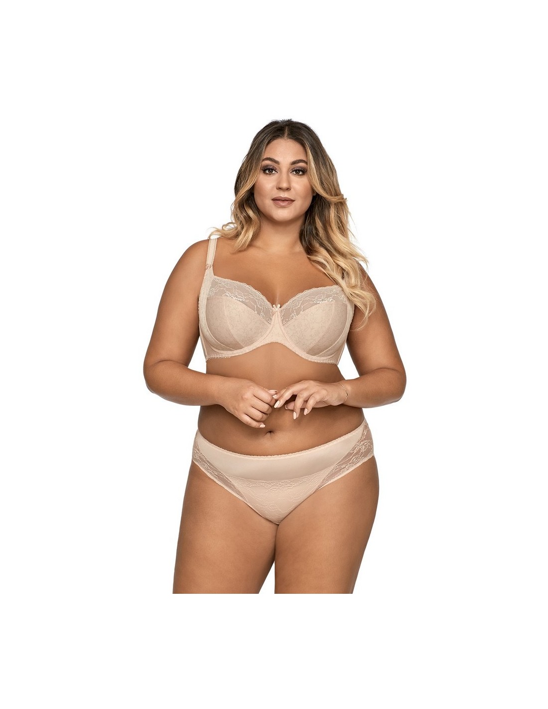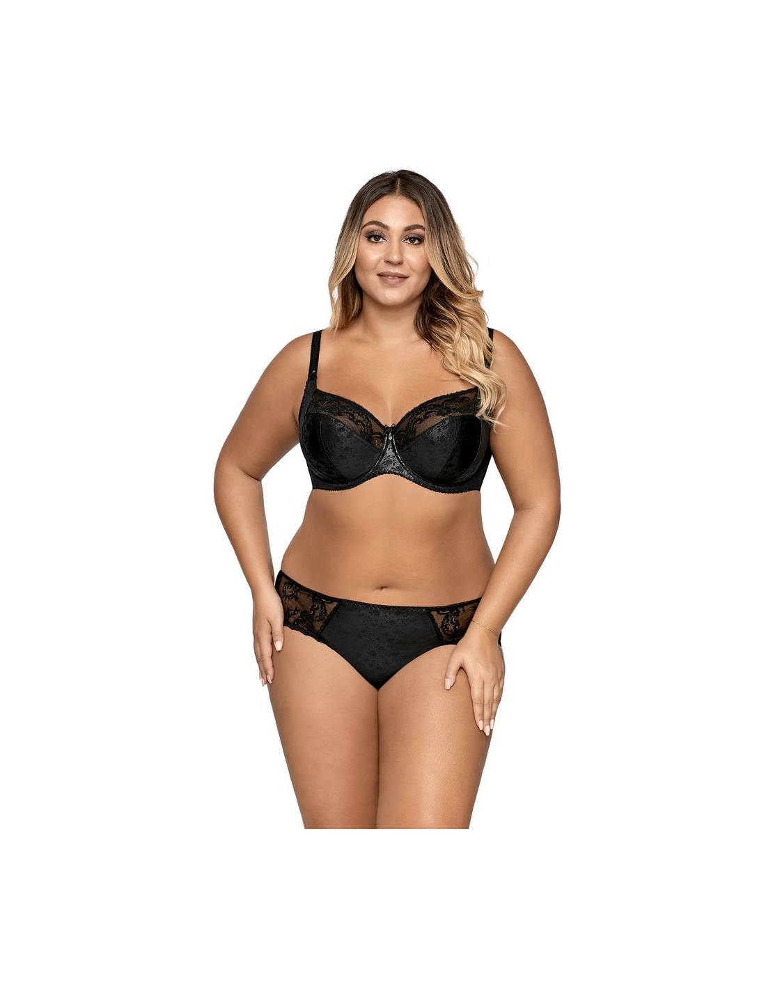 Dzięki wykorzystaniu gładkiej mikrofibry oraz delikatnych wstawek z koronki, majtki idealnie dopasowują się do ciała, zapewniając komfort na co dzień. Tył majtek wykonany jest z jednolitego materiału, co gwarantuje gładki wygląd pod ubraniem. Dodatkowo, nogawki wykończono subtelną gumokoronką, która nie tylko ozdabia, ale również zapobiega przesuwaniu się bielizny. Skład materiałowy to 91% poliamid, 5% bawełna i 4% elastan, co czyni je elastycznymi, ale stabilnie trzymającymi się ciała. Figi Ava 1130 są idealne do noszenia pod dopasowane ubrania, dzięki swojej gładkości i delikatnym zdobieniom dodającym subtelnej elegancji.