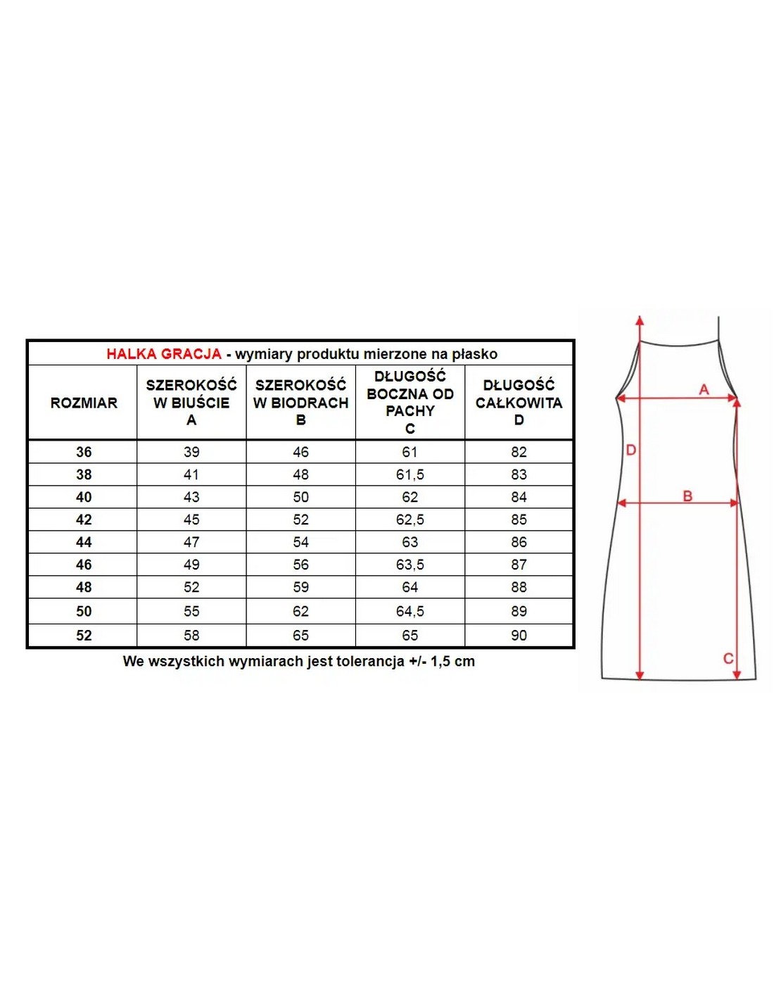 Gracja to krótka halka na wąskich, regulowanych ramiączkach, z długością do połowy uda. Dekolt wykończony jest delikatną lamówką a wszystkie krawędzie halki są płaskie, co czyni ją niemal niewidoczną pod ubraniem.