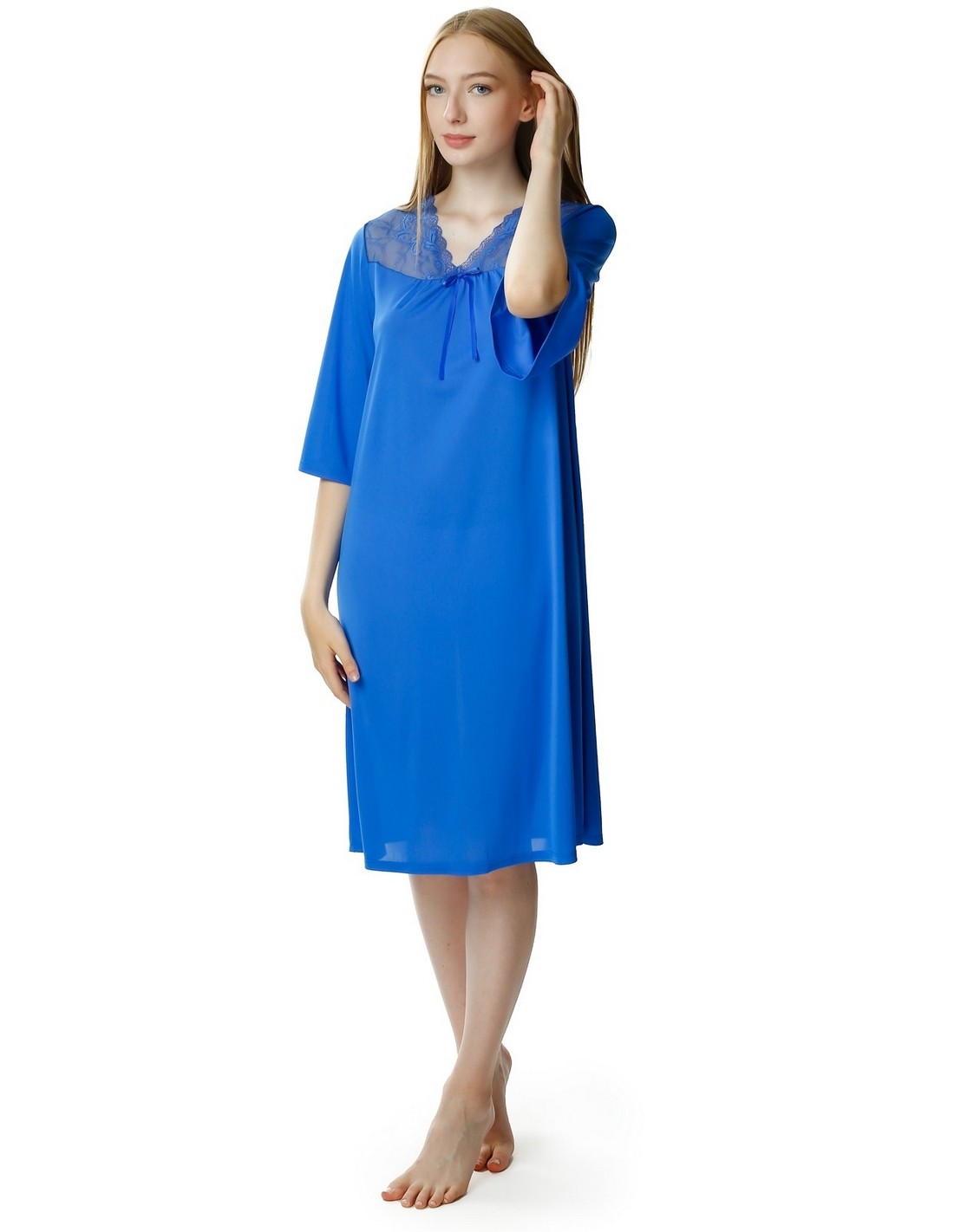 Koszulka nocna Dagmara ma szeroki rękawek na 3/4 długości, dzięki czemu perfekcyjnie maskuje ramiona, jednocześnie umożliwiając swobodę ruchów i komfort na co dzień.