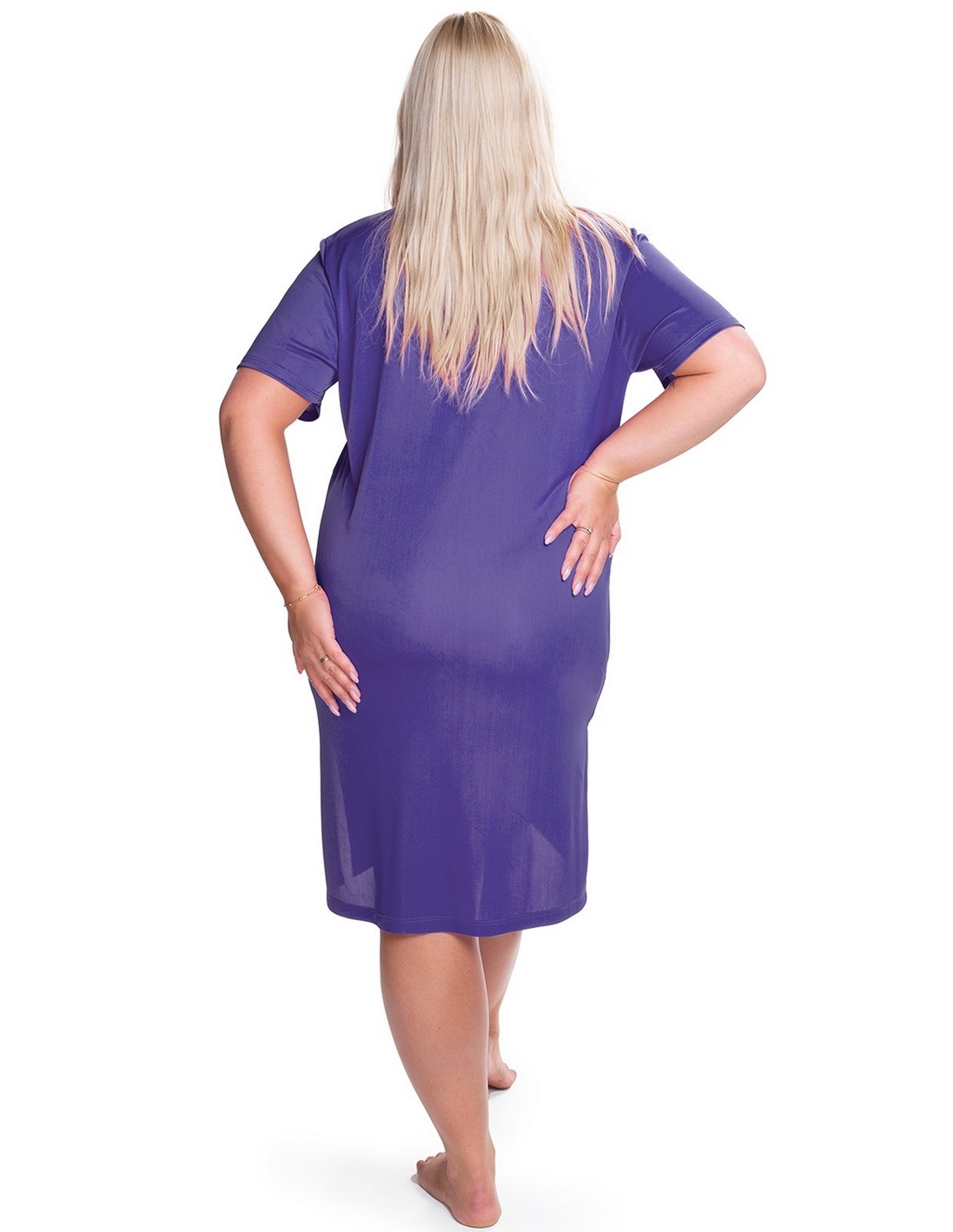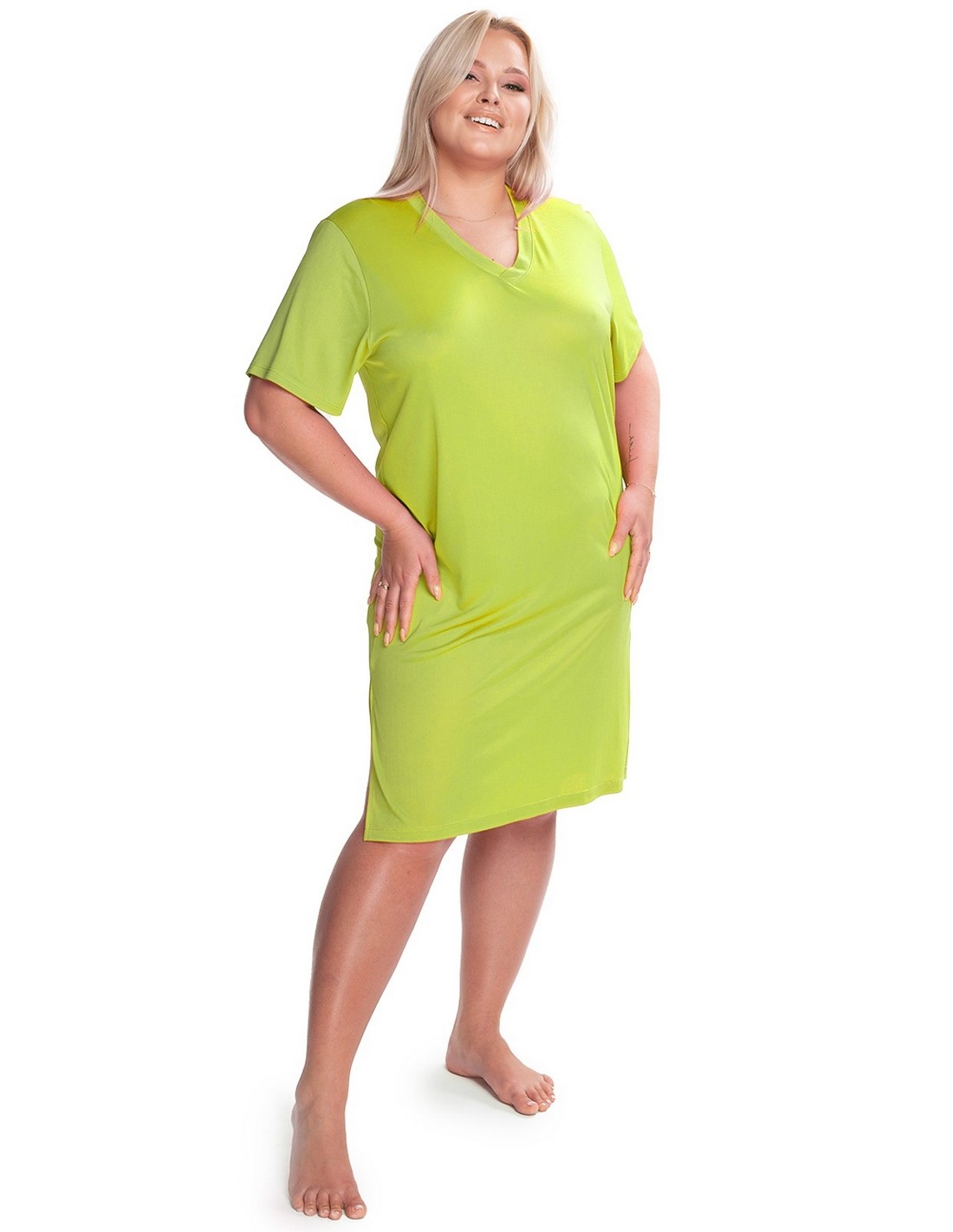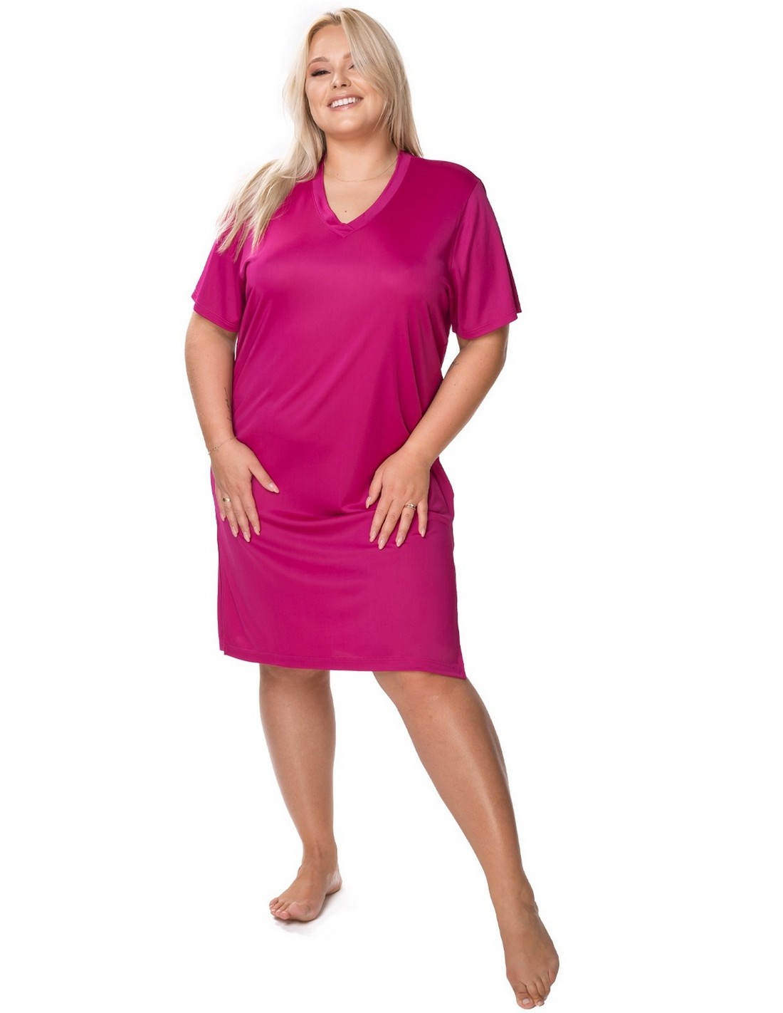 Koszula nocna Sporti prezentuje się niezwykle stylowo, łącząc w sobie subtelność i funkcjonalność. Jej krótki rękaw dodaje lekkości, perfekcyjnie sprawdzając się w cieplejsze noce. Długość do kolan nadaje koszuli ponadczasowego charakteru, a dekolt w szpic dodaje jej delikatnej, kobiecej nuty.