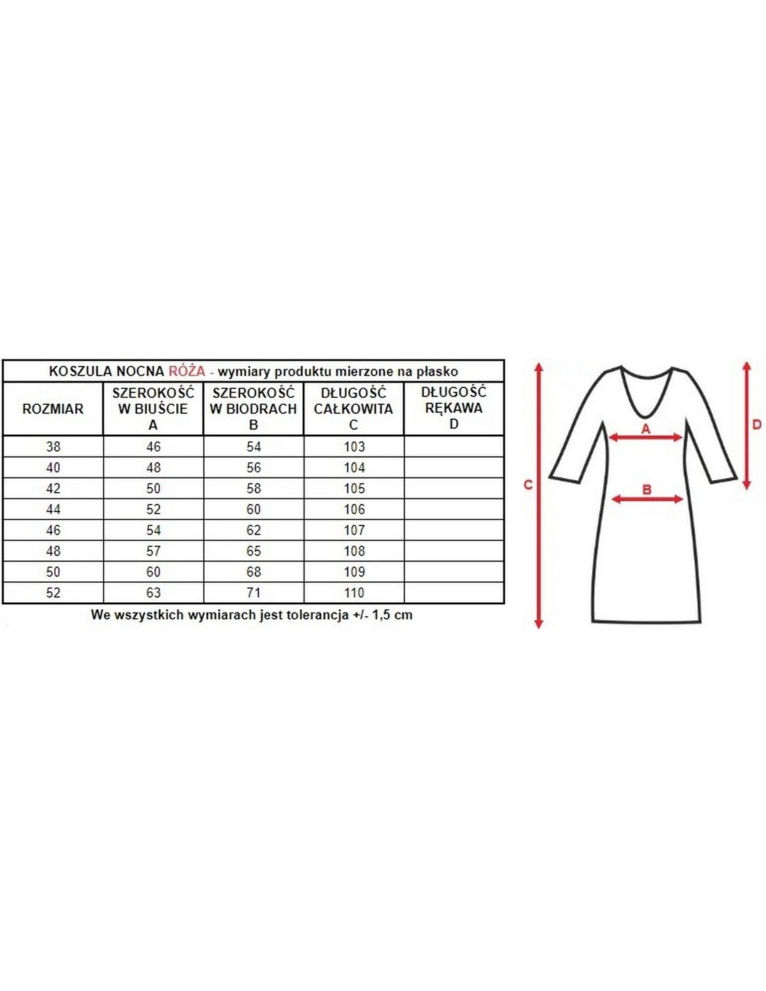 Koszula nocna Róża sprawi, że pozostaniesz cudownie szykowna i elegancka nawet gdy zapadnie zmrok. Róża jest dostępna w kilku wersjach kolorystycznych, od rozmiaru 38 do 52.