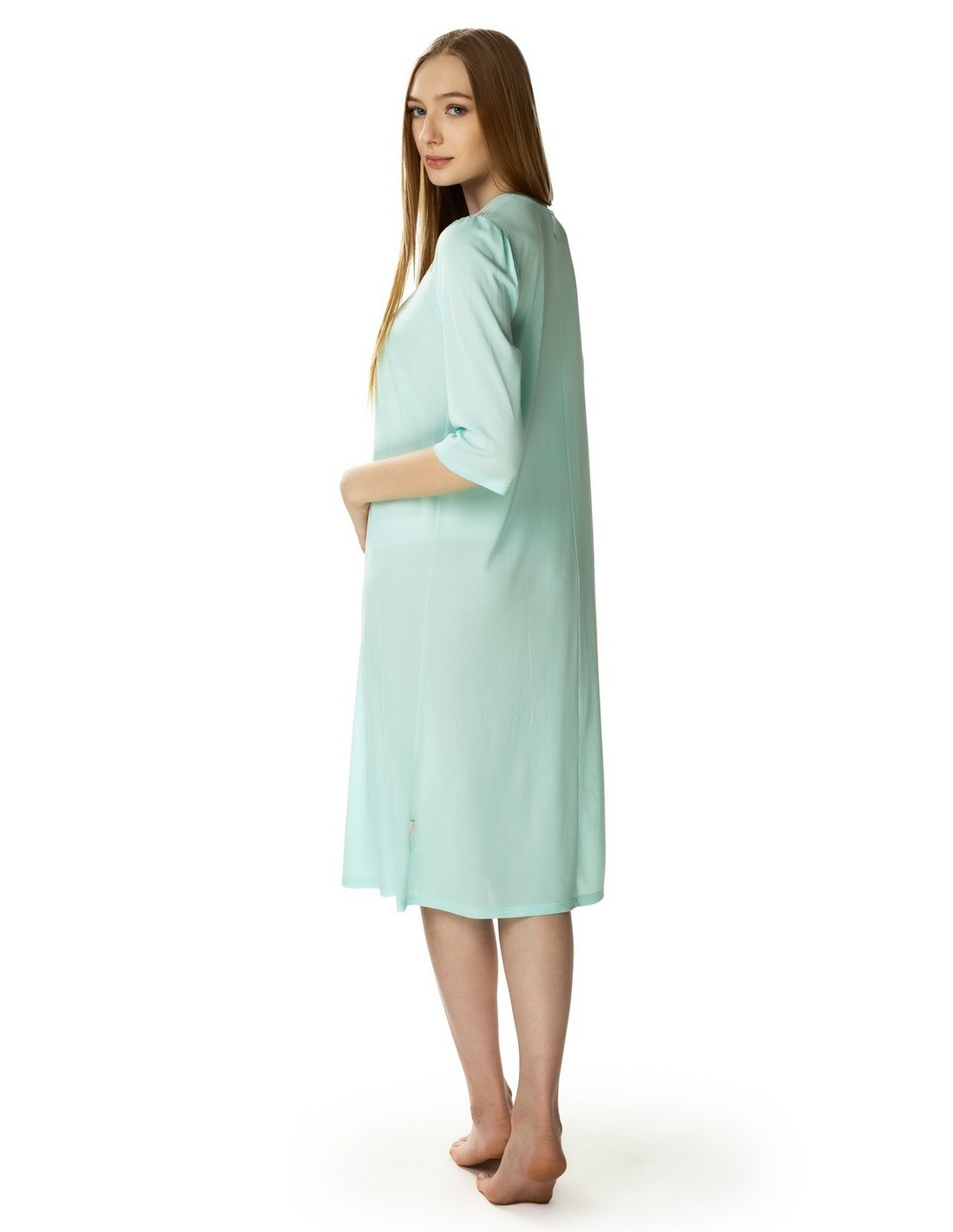 Damska koszula nocna Diana z rękawem długości 3/4 z wysokiej klasy jedwabiu wiskozowego. Koszula nocna długości sięgającej za kolano, świetnie sprawdzi się o każdej porze roku.