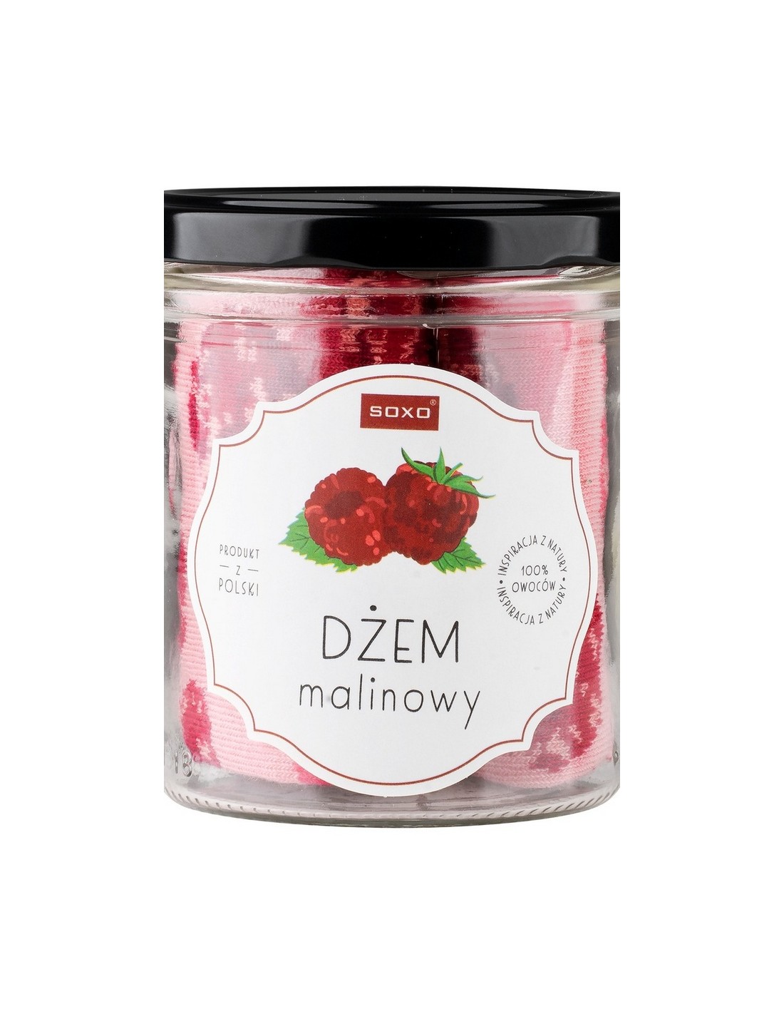 • Jedyny w swoim rodzaju dżem od Soxo. Wyobraź sobie moment, w którym otwierasz słoik, a w nim znajdujesz mięciutkie skarpetki z motywem malin i pachnące malinami. To doskonały pomysł na prezent! skład surowcowy: 80% bawełna, 15% poliamid, 5% elastan.