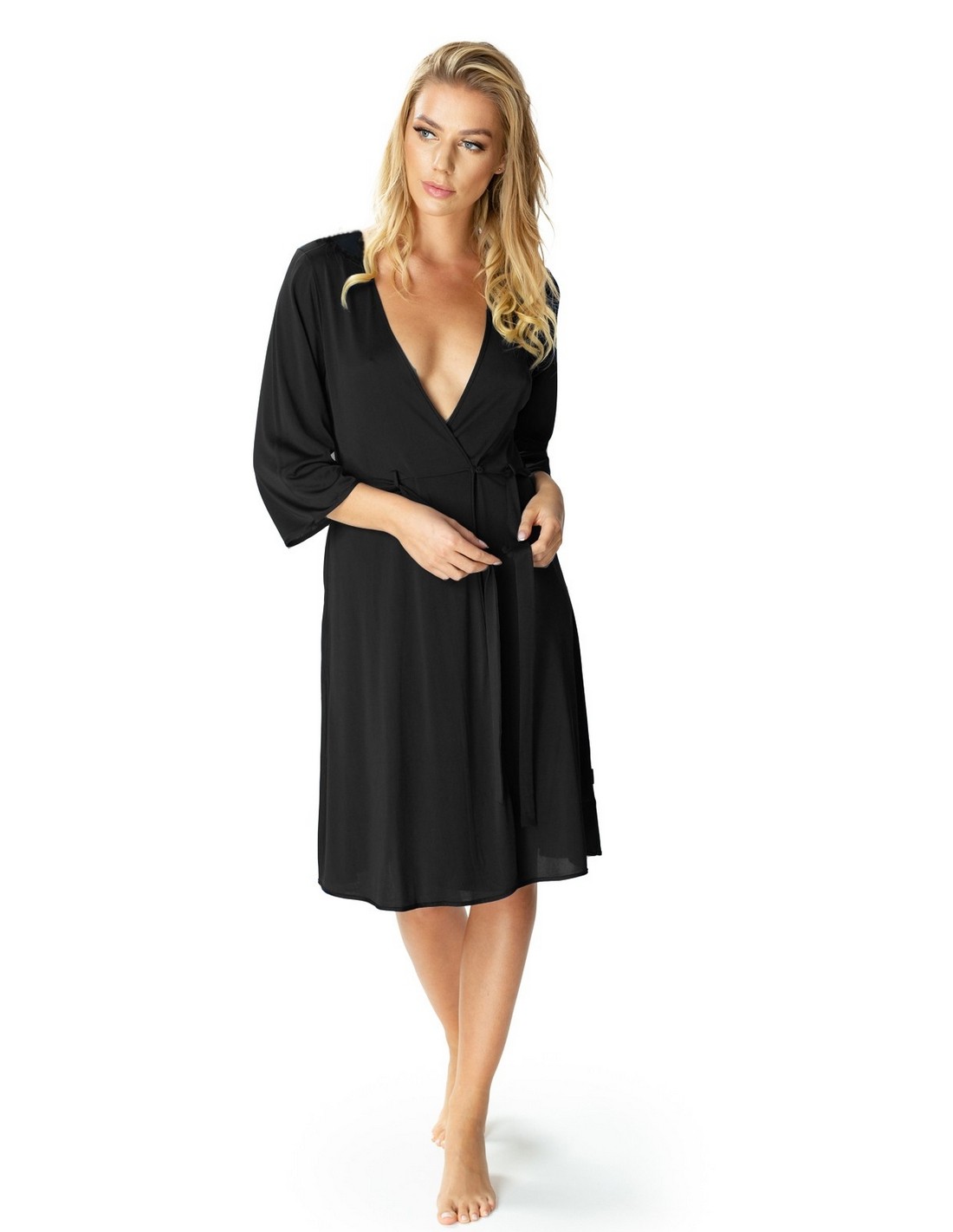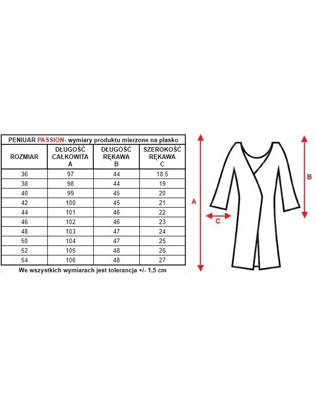 Peniuar Passion posiada długość do kolan i rękawy 3/4, które są bardzo komfortowe i wygodne. Szlafrok zapinany jest na guziczek oraz przewiązywany w pasie. Perfekcyjnie sprawdzi się na wakacyjny wyjazd lub pobyt w szpitalu.